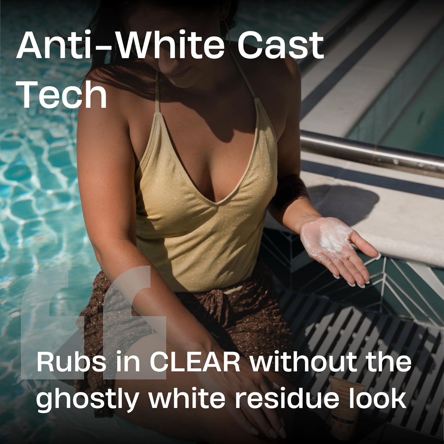 Anti-White Cast Tech means strong UV protection with less embarrassing white residue common in other mineral sunscreens.